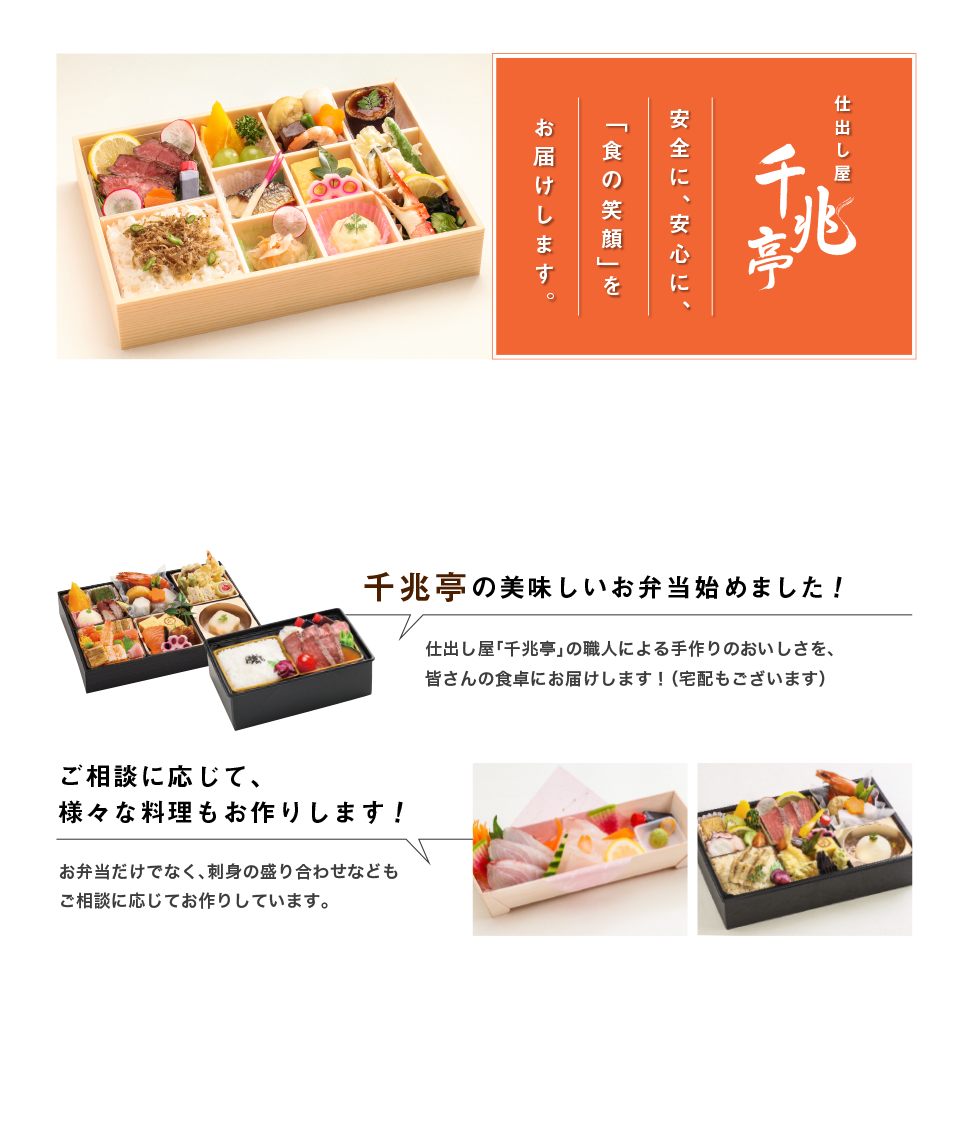 食材の持ち味を大切にした手作り弁当・オードブル・刺身盛合せ・ふく刺のご注文承ります。
